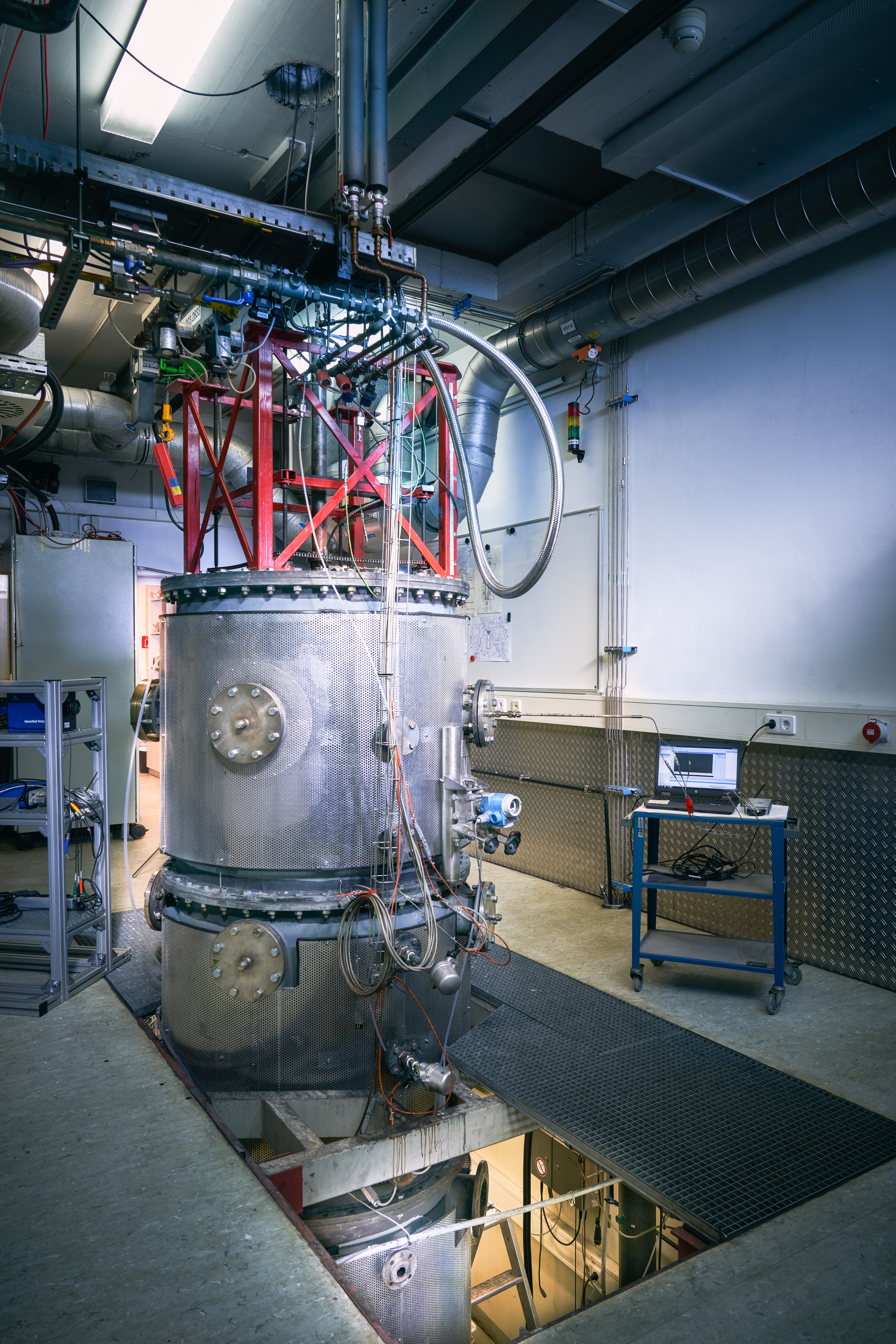 Research at the atmospheric Research Entrained flow Gasifier REGA focusses on the gasification behavior of biogenic and anthropogenic liquid and suspension fuels. The axially movable burner construction enables radial profile measurements of temperature and gas phase composition at variable burner distances. Applying laser-optical diagnostics allows for the determination of local distributions of droplet sizes and velocities, as well as the characterization of reaction zones. The experimental data serve as basis for modelling the thermo-chemical processes under entrained flow conditions and for validation of numerical models simulating the gasification process.